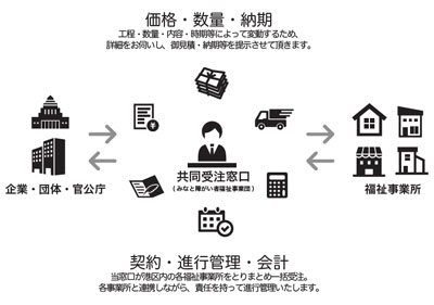 障害者の方々に仕事の機会を提供し、工賃(障害者の方の賃金)の向上に繋げることができます。 |